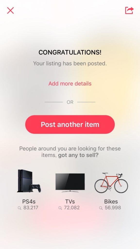 letgoでは出品時に自分の商品のコマーシャル映像が流せる+パターンが増やしてバイラルを狙おうとしているのはわかるがスグに飽きそうだと感じた。自分だったら、今流行りの動画モデル(カットタイミングは統一化して5〜10カット制限でユーザーが撮った商品動画を並べて15秒の動画を作成して、メルカリFacebookグループに投稿する仕組みを作り、ユーザーはカテゴリー別に動画を見れる。そしてメルカリへの導線を作ってあげたりしてみてもいいかも。C2Cモデルショッピングチャンネルみたいなサービスを確立し、snapchatのストーリーのDiscoverチャンネル化したり)